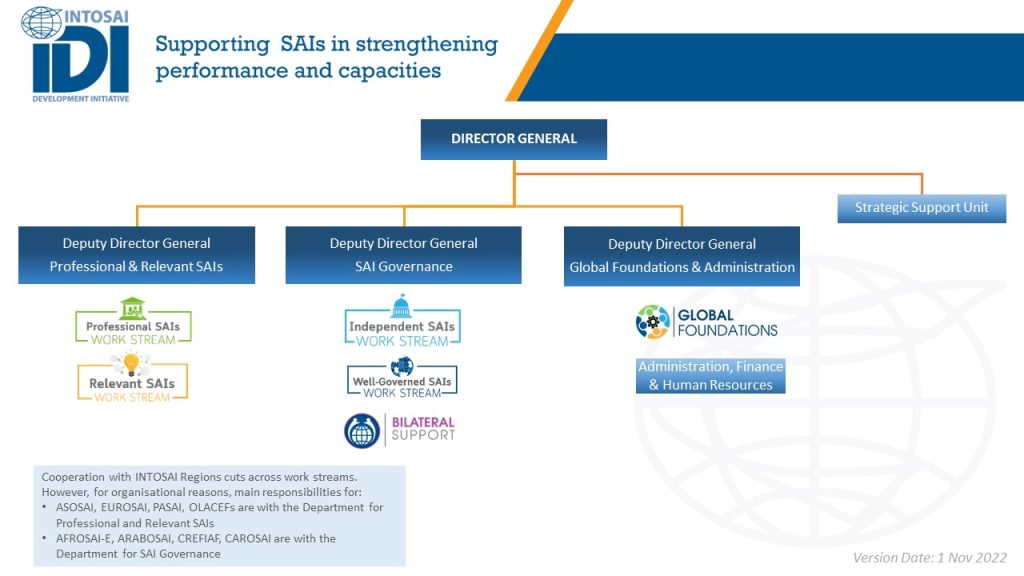 IDI is mandated to support Supreme Audit Institutions (SAIs) in developing countries to sustainably enhance their performance and capacity.